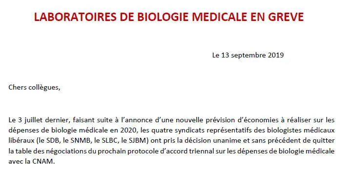 LABORATOIRES DE BIOLOGIE MÉDICALE EN GRÈVE