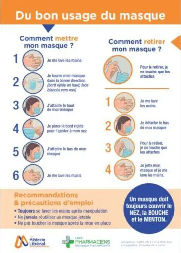 Les URPS médecins et pharmaciens de BFC vous proposent de télécharger dans le lien ci-après un flyer présentant les mesures et les gestes à suivre pour porter efficacement un masque de protection, à proposer à vos patients lors de la dispensation.